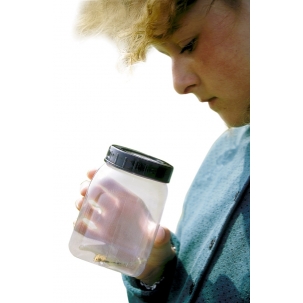 3,5x didintuvas, sumontuotas skaidraus plastiko indo dangtyje. 45 mm didintuvo skersmuo leidžia jį lengvai naudoti net mažiems vaikams.