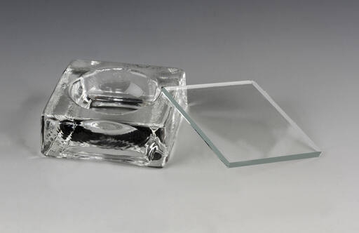 Tvirtas stiklinis blokas su gilia įduba, puikiai tinka norint apžiūrėti vandens organizmus naudojant stereo mikroskopą.